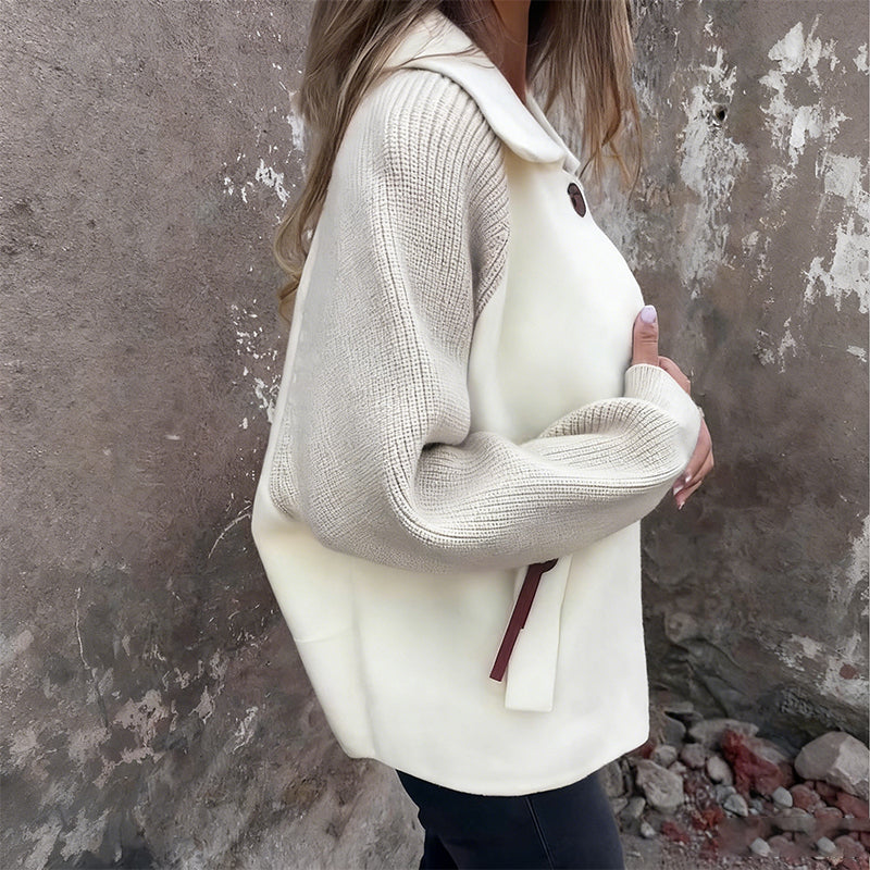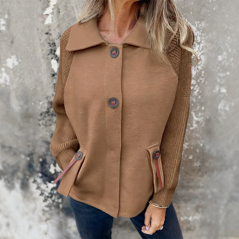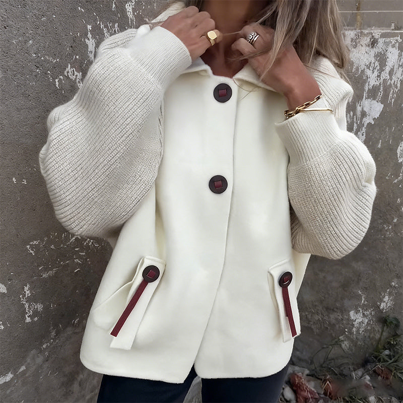 ELEGANT BUTTON DETAILS - The large, contrasting buttons on the front closure and pockets serve as a stylish focal point. They add a refined, high-end touch that enhances the jacket's overall aesthetic appeal.