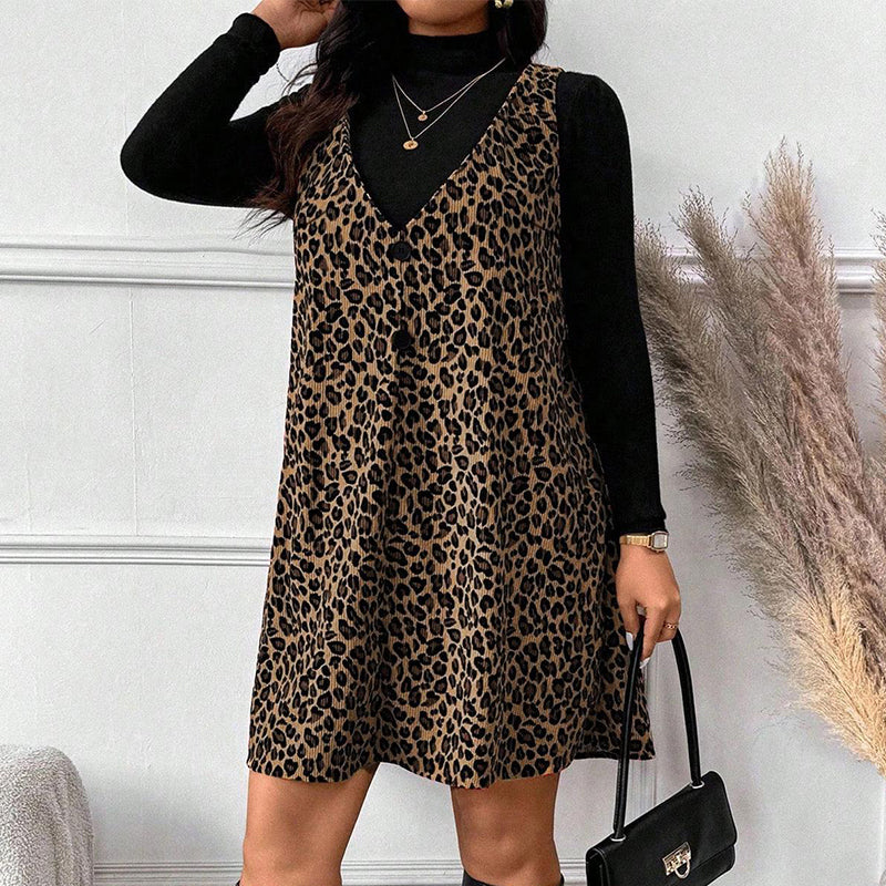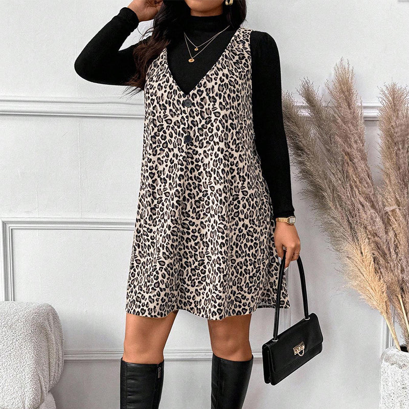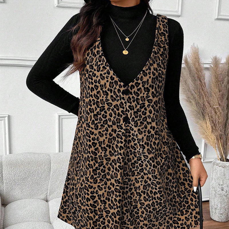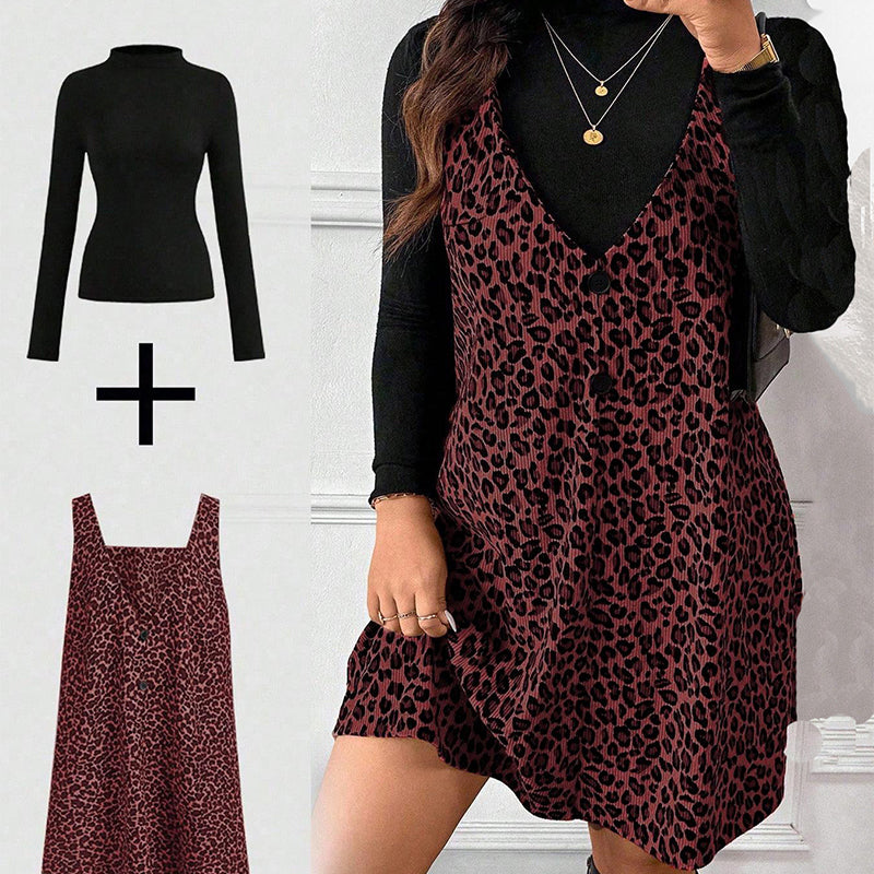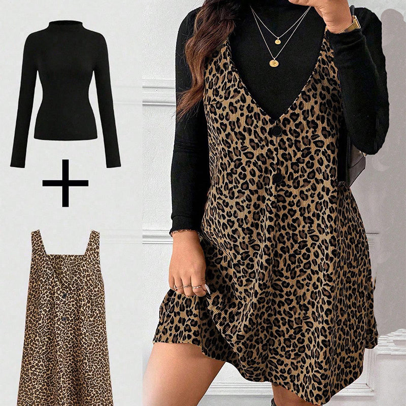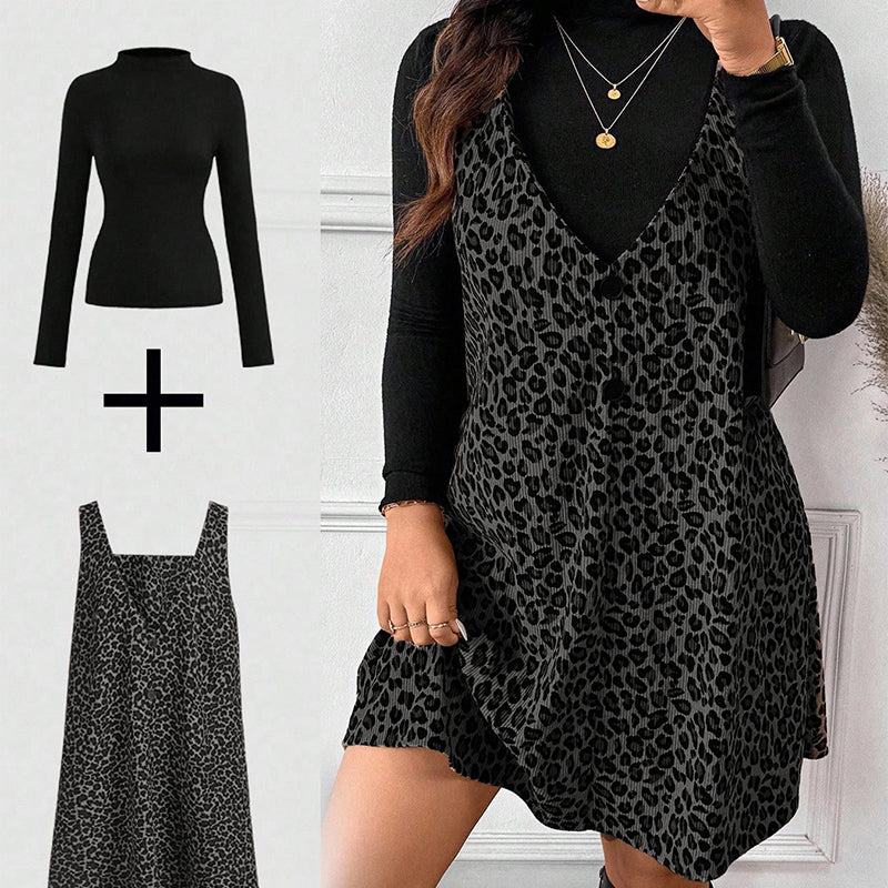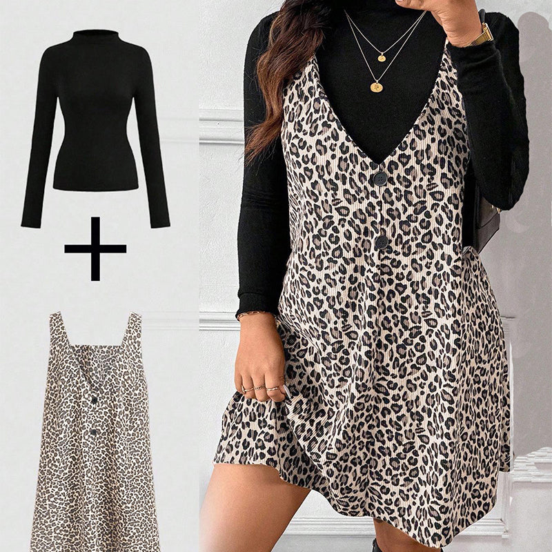 Layered Look Leopard Cami Dress & Top Set