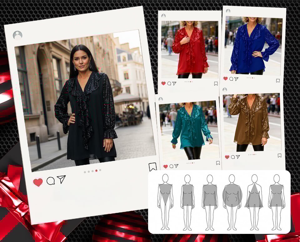 Limited Time Offer! Grab this essential blouse featuring dazzling sequin sleeves and a romantic ruffled V-neck. Get instant holiday glamour before the sale ends!
