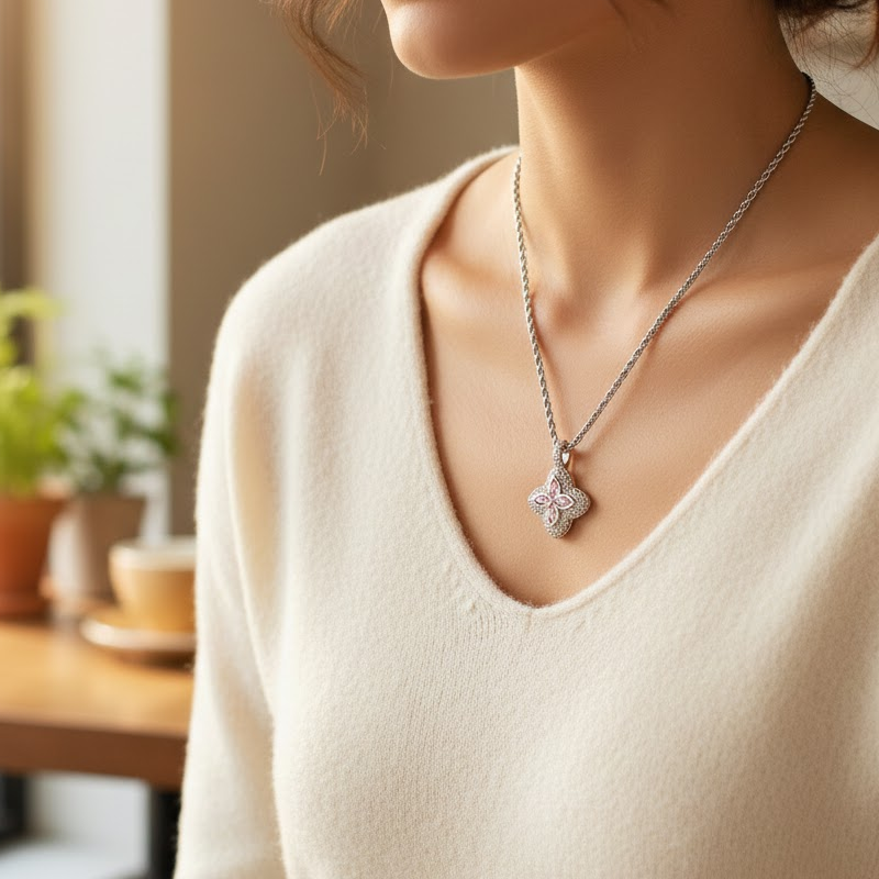 Remove the necklace before showering, swimming, or exercising to prevent damage.
