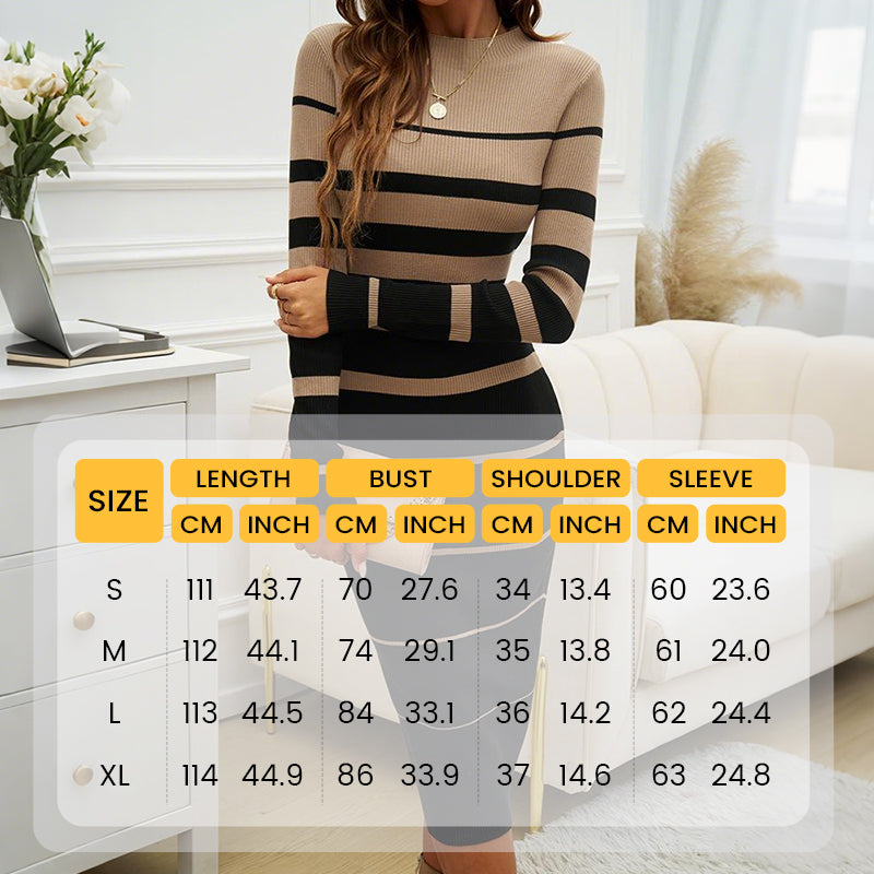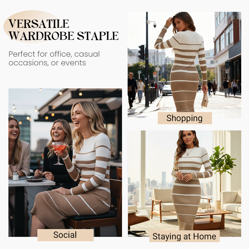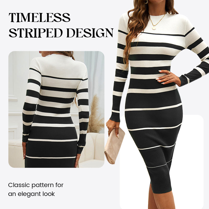 Package Include: 1 * Women's Long-Sleeve Striped Bodycon Sweater Dress