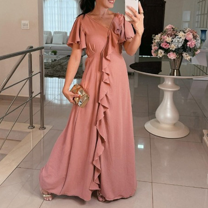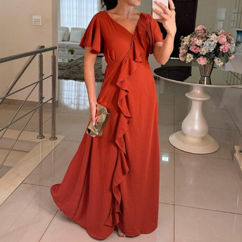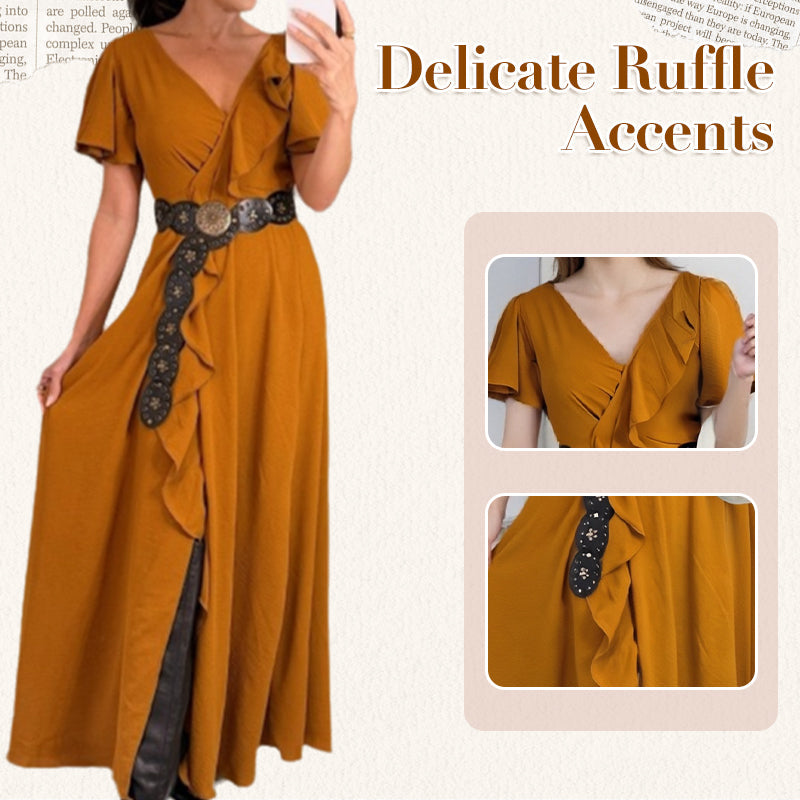 Package Include: 1* Women's V-Neck Ruffle Asymmetrical Dress