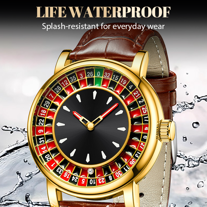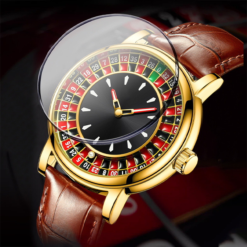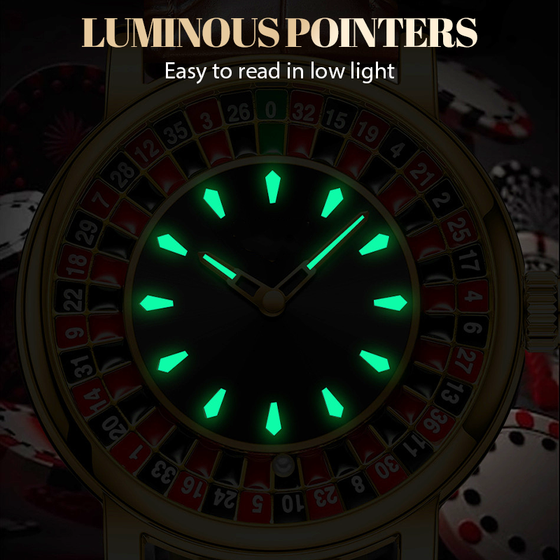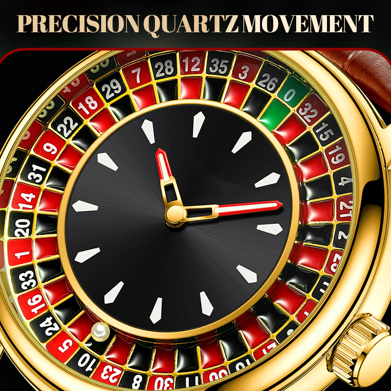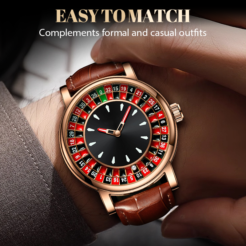 UNIQUE DIAL DESIGN – Inspired by vintage casinos, the dial fuses vivid red, sleek black, and the iconic green “0” into a bold, high-contrast layout. Echoing the thrill of a roulette table, it adds a playful twist to a polished look. Gold-finished accents and smooth contours frame the dial, making this watch an instant conversation starter—whether you're closing deals or catching up over drinks.
