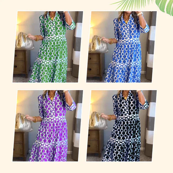 🌸Spring Specials Sale 49% OFF🌸💐Women’s Geometric Print V-Neck Maxi Dress