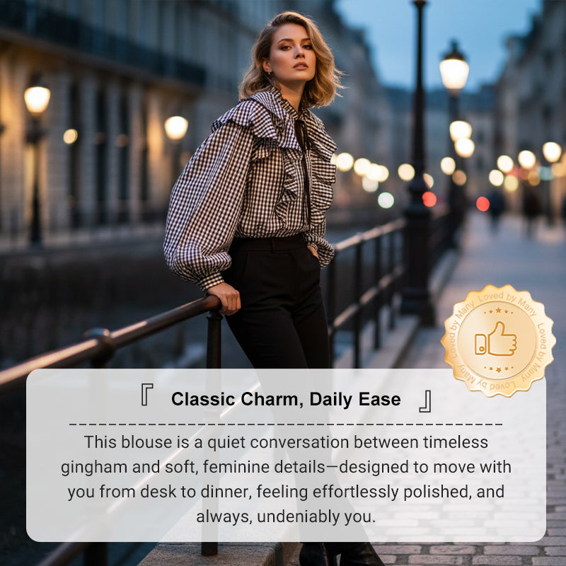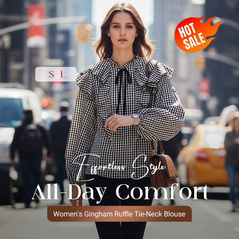🔥Black Friday Mega Sale🔥Women's Gingham Ruffle Tie-Neck Blouse