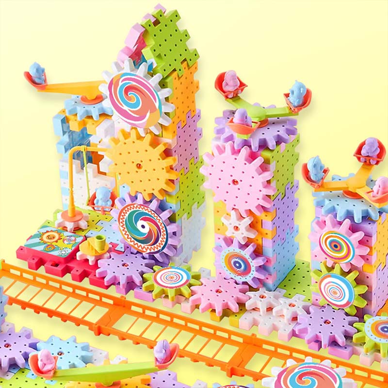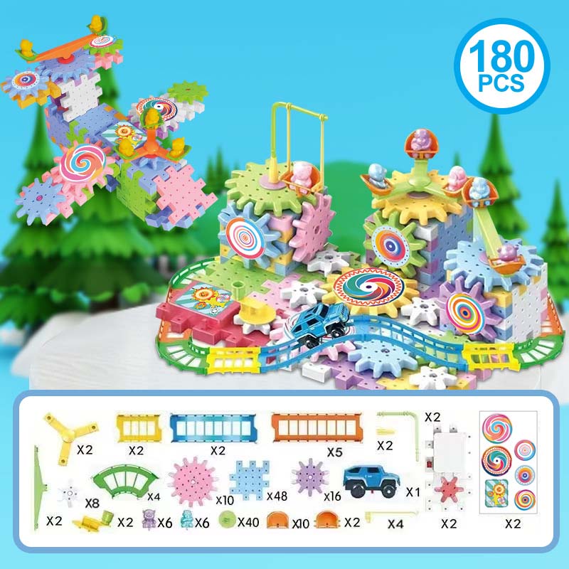 ENDLESS CREATIVITY - Go beyond simple stacking. This dynamic kit allows kids to build complex, moving structures with gears and tracks, challenging their imagination to create everything from carousels to entire amusement park layouts.
