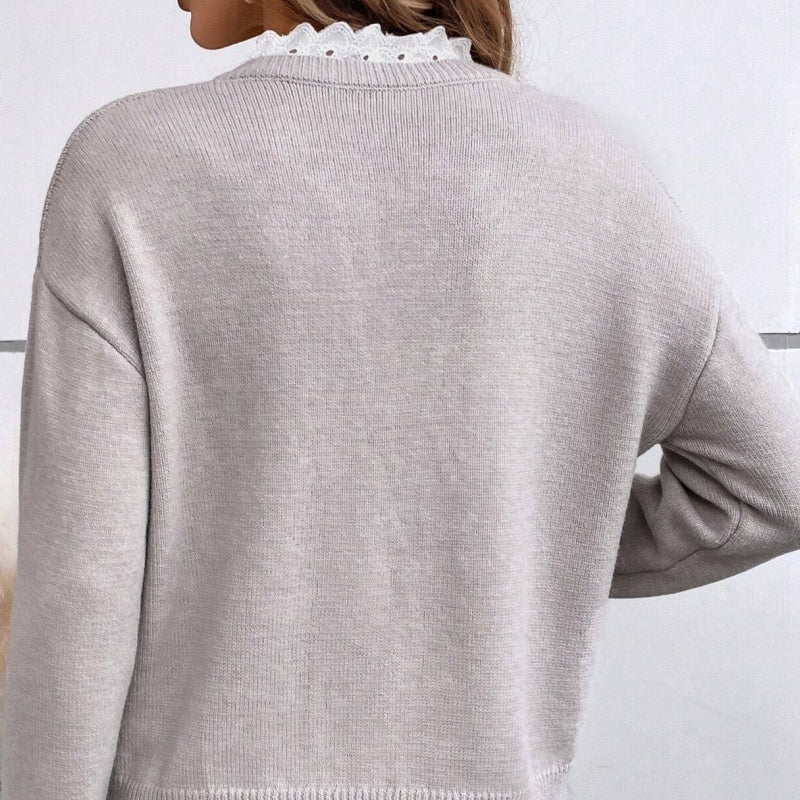 ✨Women's Lace-Trimmed V-Neck Knit Top