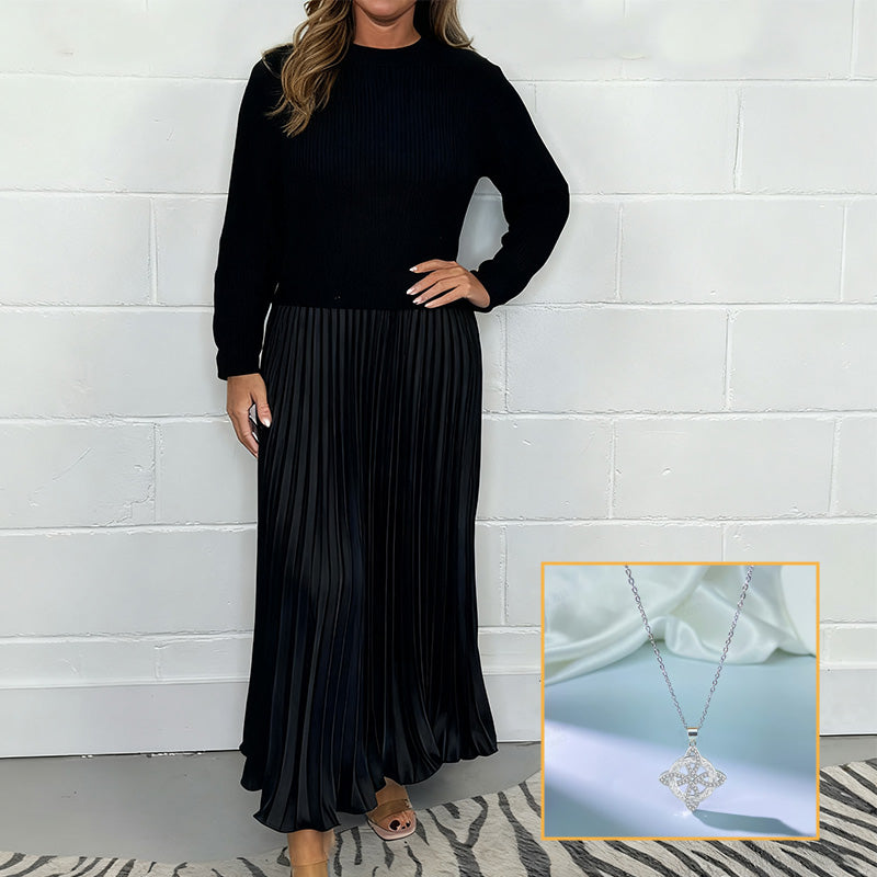 Unleash Your Inner Fashionista!💃Elevate your style game with this Long Sleeve Jumper & Pleated Bottom Dress combo!💯Chic, effortless look guaranteed