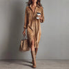 Designed with dual chest pockets and a full button-down placket, this shirt dress blends everyday practicality with effortless sophistication. The knee-length silhouette flatters all body types, while long sleeves can be rolled for a relaxed vibe.