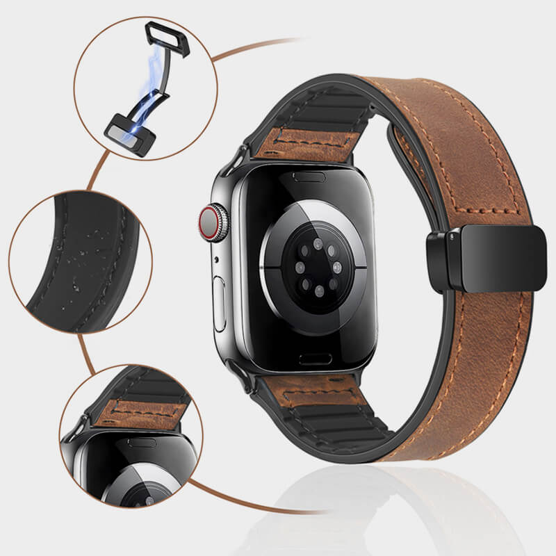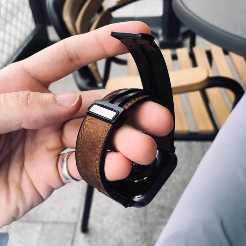 Adjustable leather strap for iwatch. It looks really classy and wear comfortably. True magnetic clasp never drop even shake hard