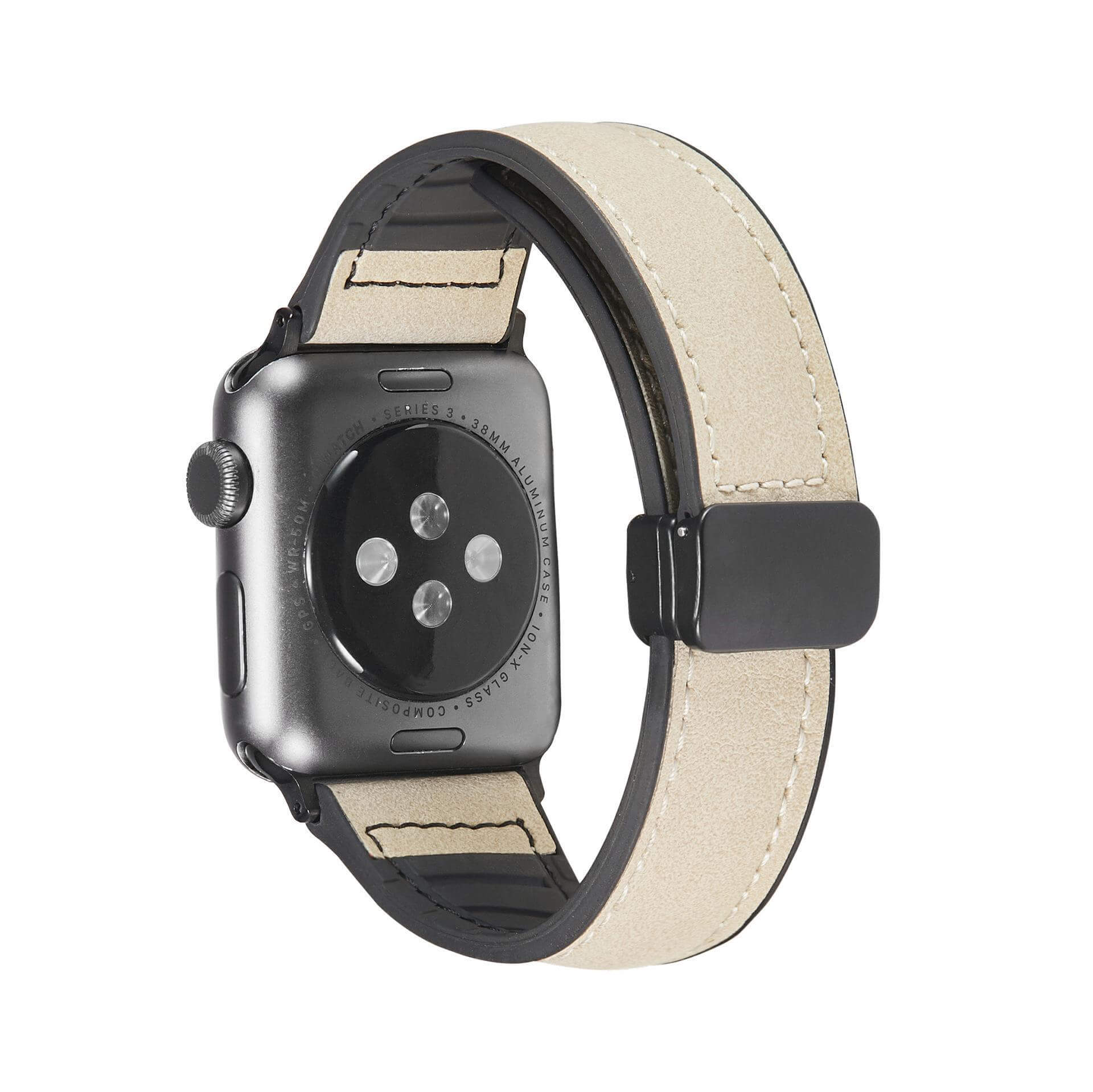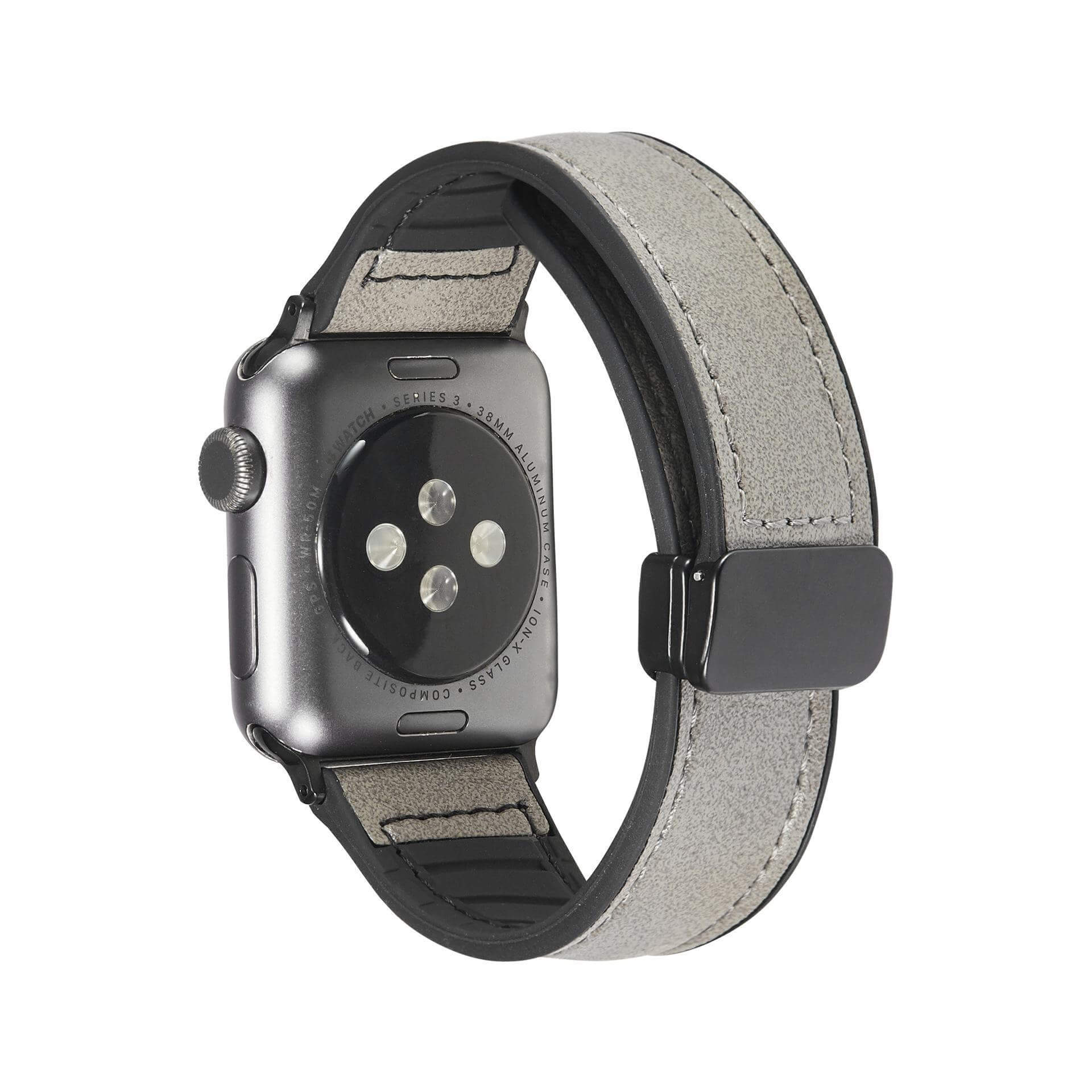 [Secure Magnetic Buckle] Fits 6.3-8.6 inches (160-220mm) wrist. The strap's end features a foldable metal magnetic adjustable buckle with high-strength magnetic suction and powerful adhesion, ensuring it stays secure during workouts. The strong magnetic buckle and sturdy adapter guarantee a lasting and comfortable fit for your Apple Watch.