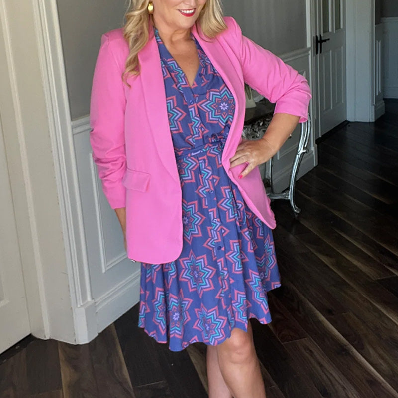EYE-CATCHING PRINT DESIGN: This dress features a bold, vibrant print that elevates your style, creating a modern, chic look that's perfect for casual outings or semi-formal events.