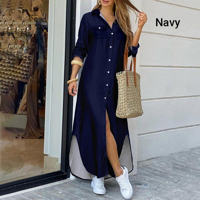EFFORTLESS BUTTON CLOSURE - The Women's Trendy Long Sleeve Shirt Dress features an effortless button closure, adding a classic touch to the overall design. The button closure not only enhances the dress's aesthetic but also allows for easy wear and removal.