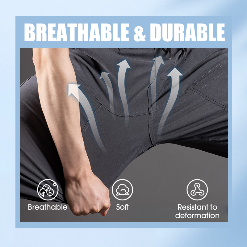 STRETCH QUICK-DRY – The stretch fabric moves with your body for flexibility, while a stretch drawstring waistband ensures a secure, adjustable fit. Quick-dry technology lets the pants dry fast after washing or moisture exposure. Ideal for active lifestyles and travel, they offer comfort, mobility, and convenience.