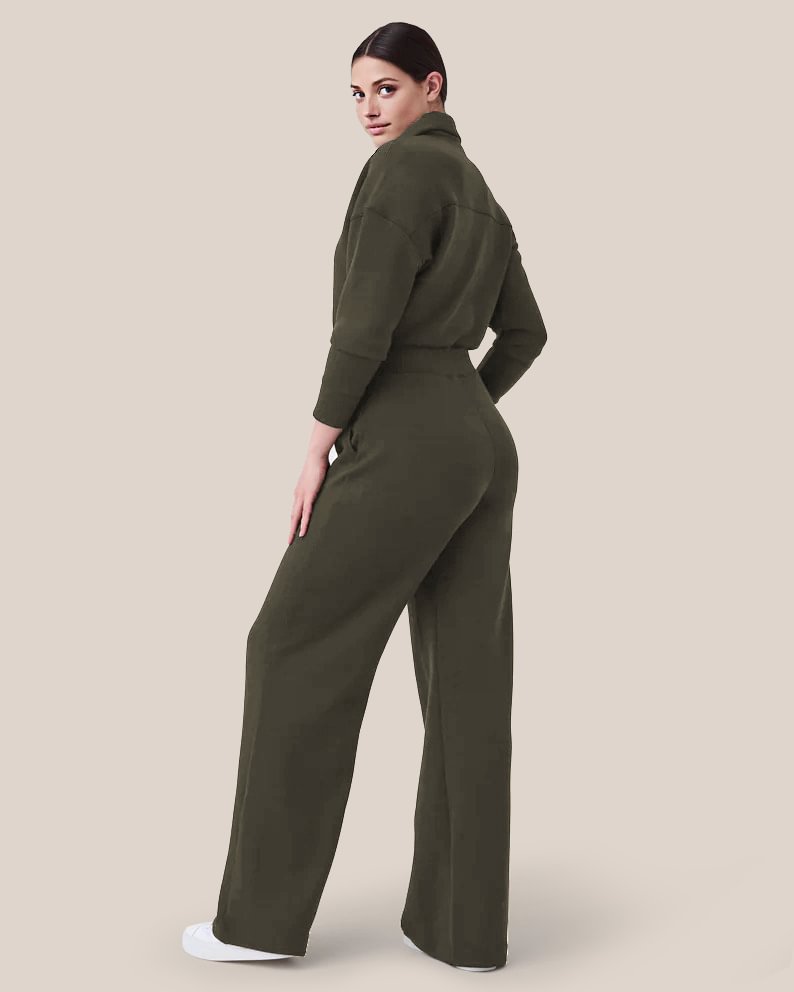 With its long sleeves, you'll stay cozy during cooler weather while still looking chic. The wide leg design adds a trendy and elegant touch, making this jumpsuit a fashion-forward choice.
