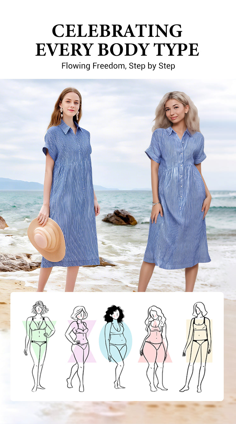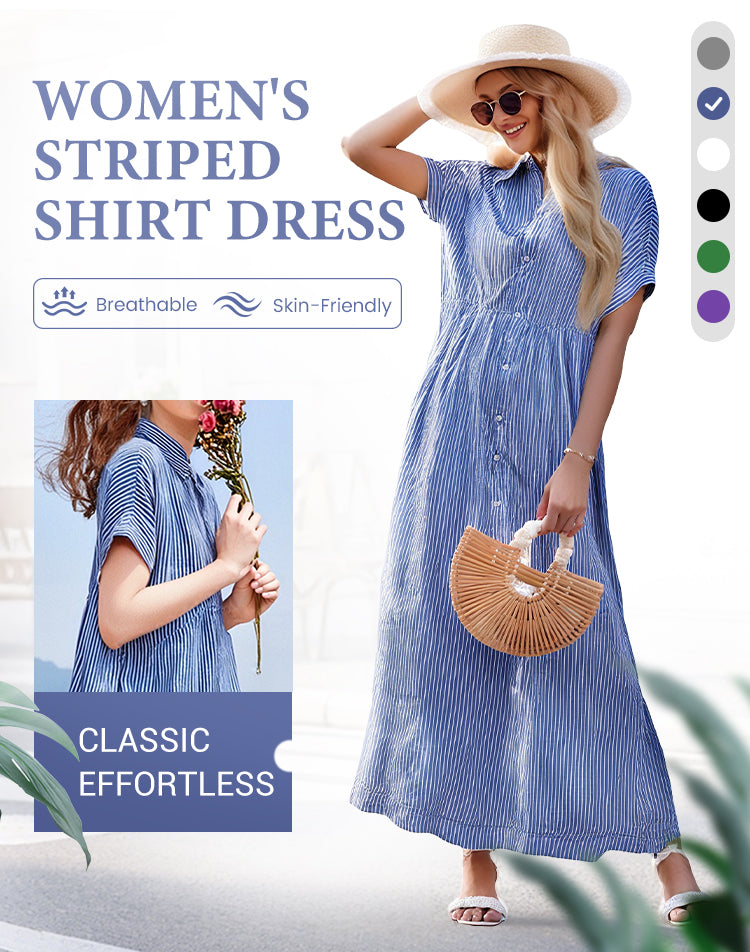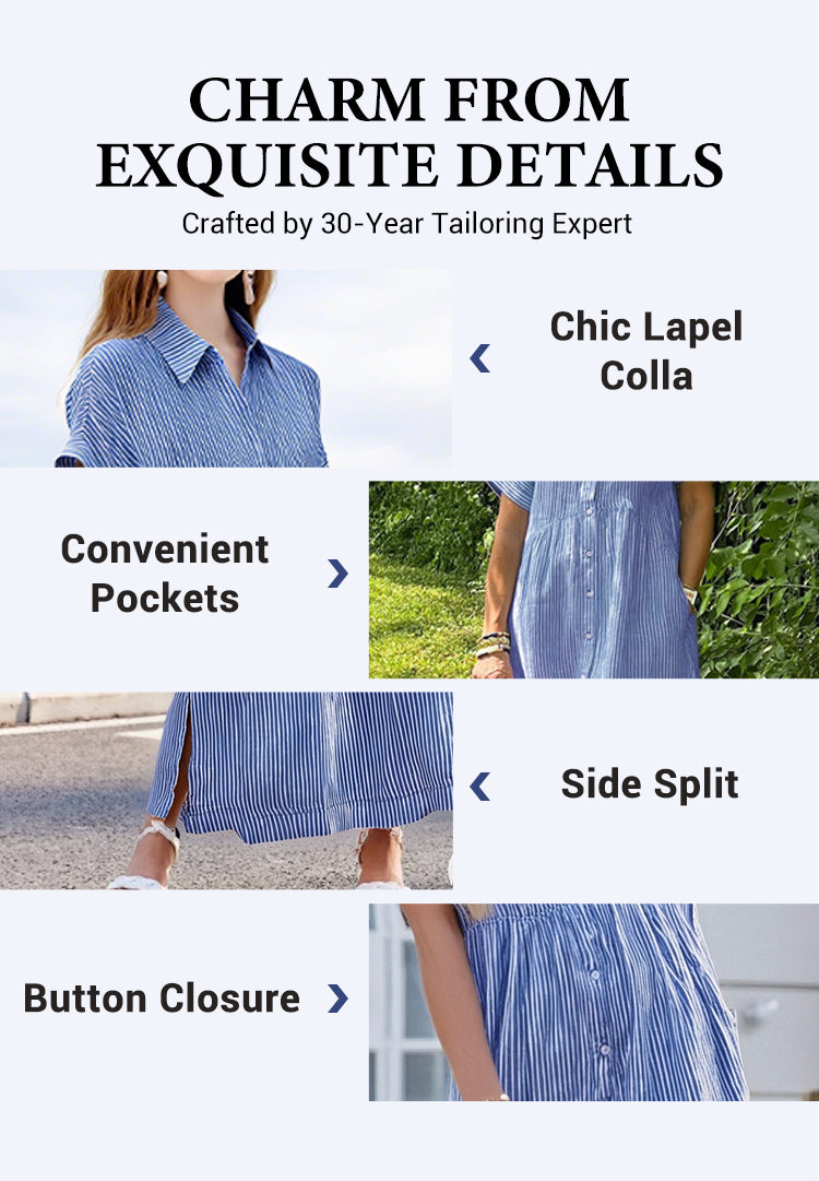 🌸Spring Sale-49% Off💃Striped Lapel Button Down Shirt Dress | With Functional Pockets