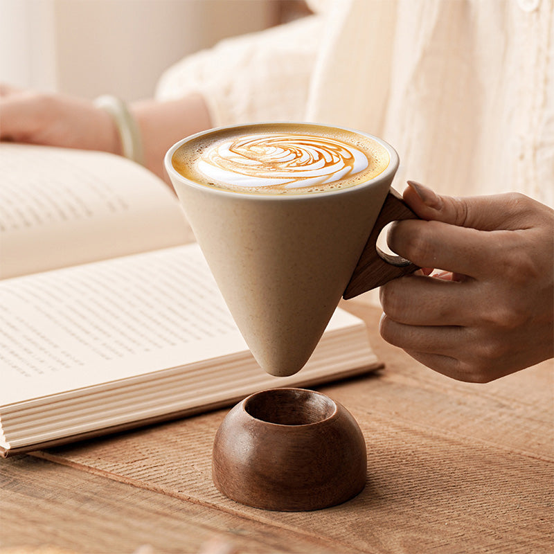 Vintage Coffee Mug with Wooden Handle & Saucer☕️