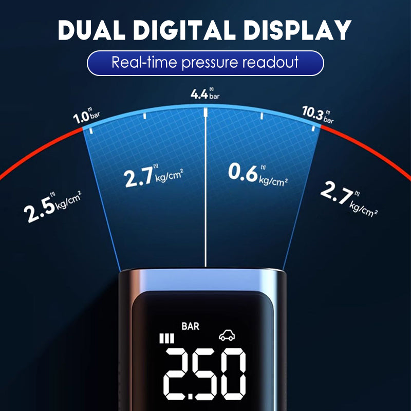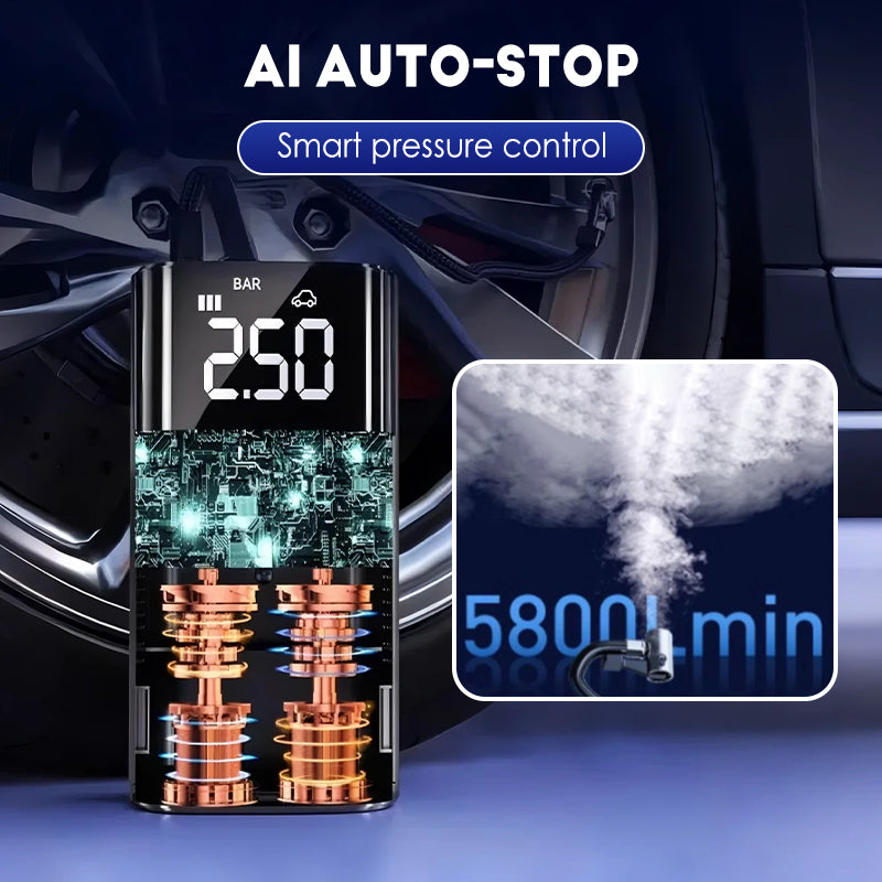AI-POWERED TIRE PROTECTION: Features built-in AI chips for real-time pressure monitoring, automatic inflation cut-off, and temperature control. Prevents over-inflation and overheating, protecting your tires from damage.