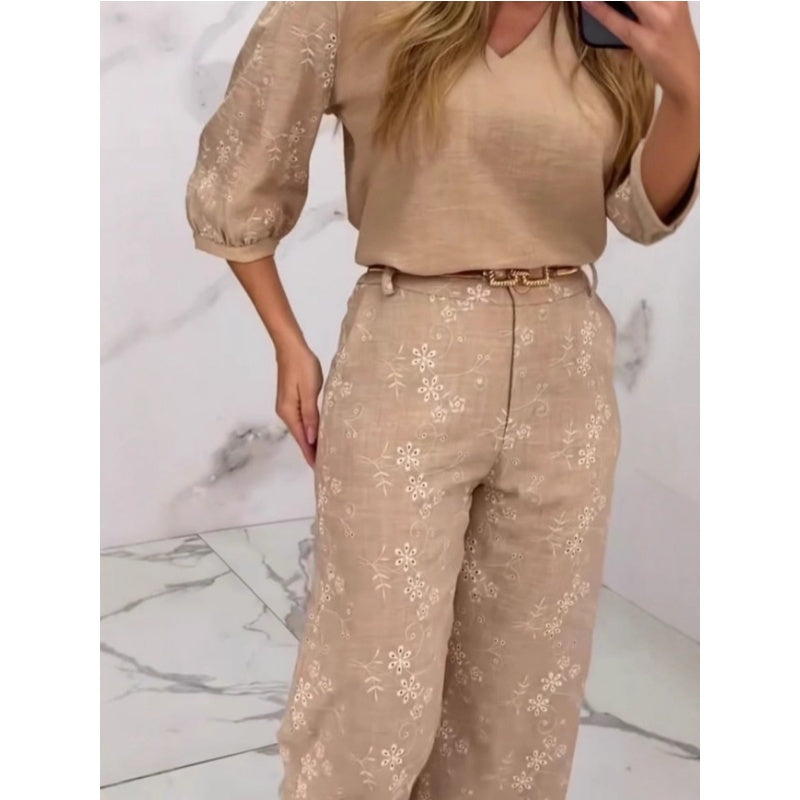 VERSATILE WARDROBE PIECE – Designed as a complete outfit, the set can also be styled separately. Pair the embroidered top with jeans for a casual chic look or match the pants with a simple blouse for understated elegance.